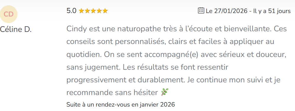 Je suis heureuse de vous accueillir ici ! Je m’appelle Cindy, je suis naturopathe.
